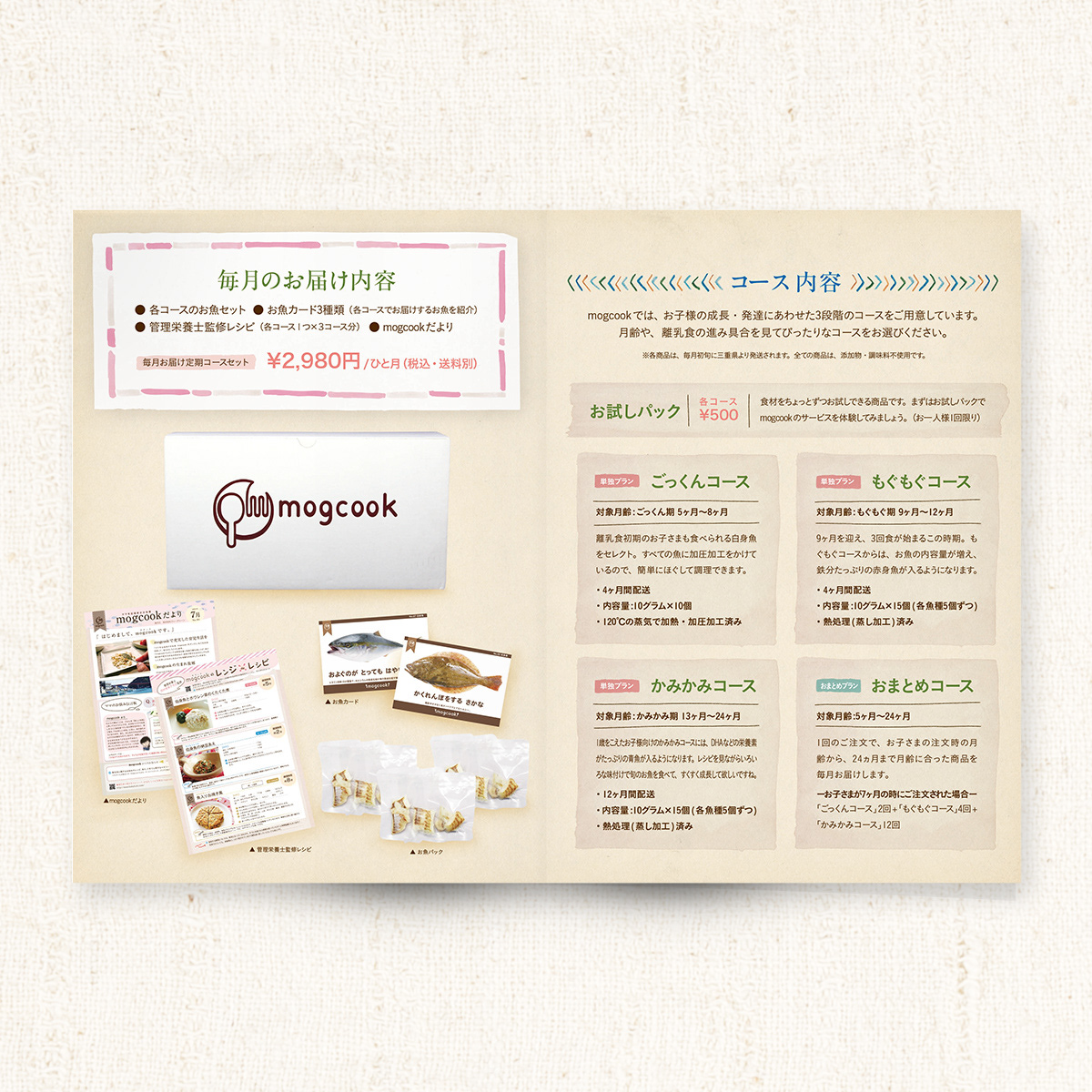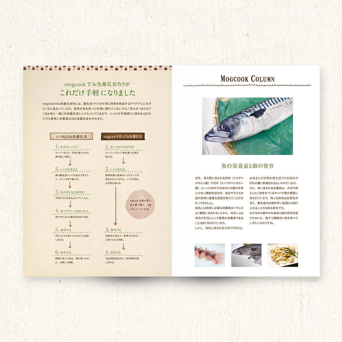 さかなの離乳食の定期配送サービスのパンフレットのデザインを担当させて頂きました。